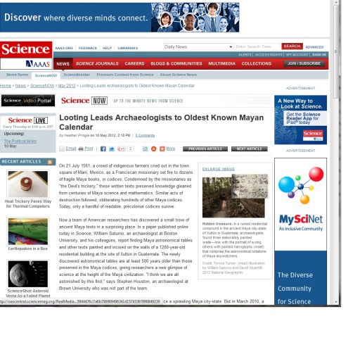 That’s pretty much what the Aztecs did.   And according to a cool new study by University of Illinois archaeologist Lisa Luceros,  that’s exactly what ordinary illiterate Maya men and women did–recording great cycles of time  in their housefloors for nearly 700 years,  from AD 450 to 1150.   “Commoners,”  says Lucero in a public statement, ” had their own way of recording their own history,  not only their history as a family,  but their place in the cosmos.”